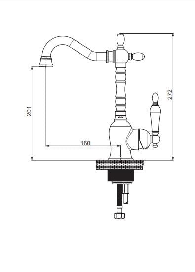 GPD Retro Tek Gövde Lavabo Bataryası siyah-rose Gold Mtl180-s-r