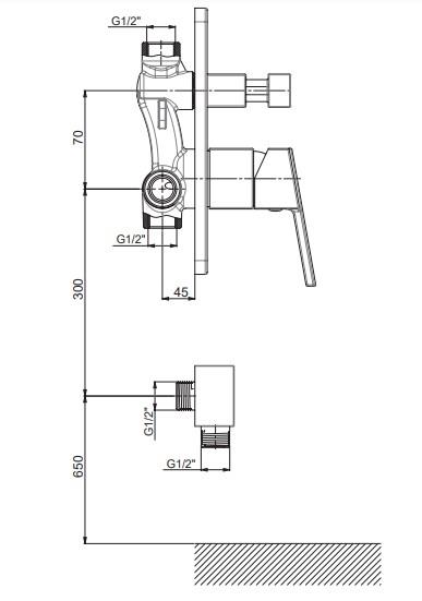 • Duş çıkış duvar bağlantı ölçüsü 1/2"
