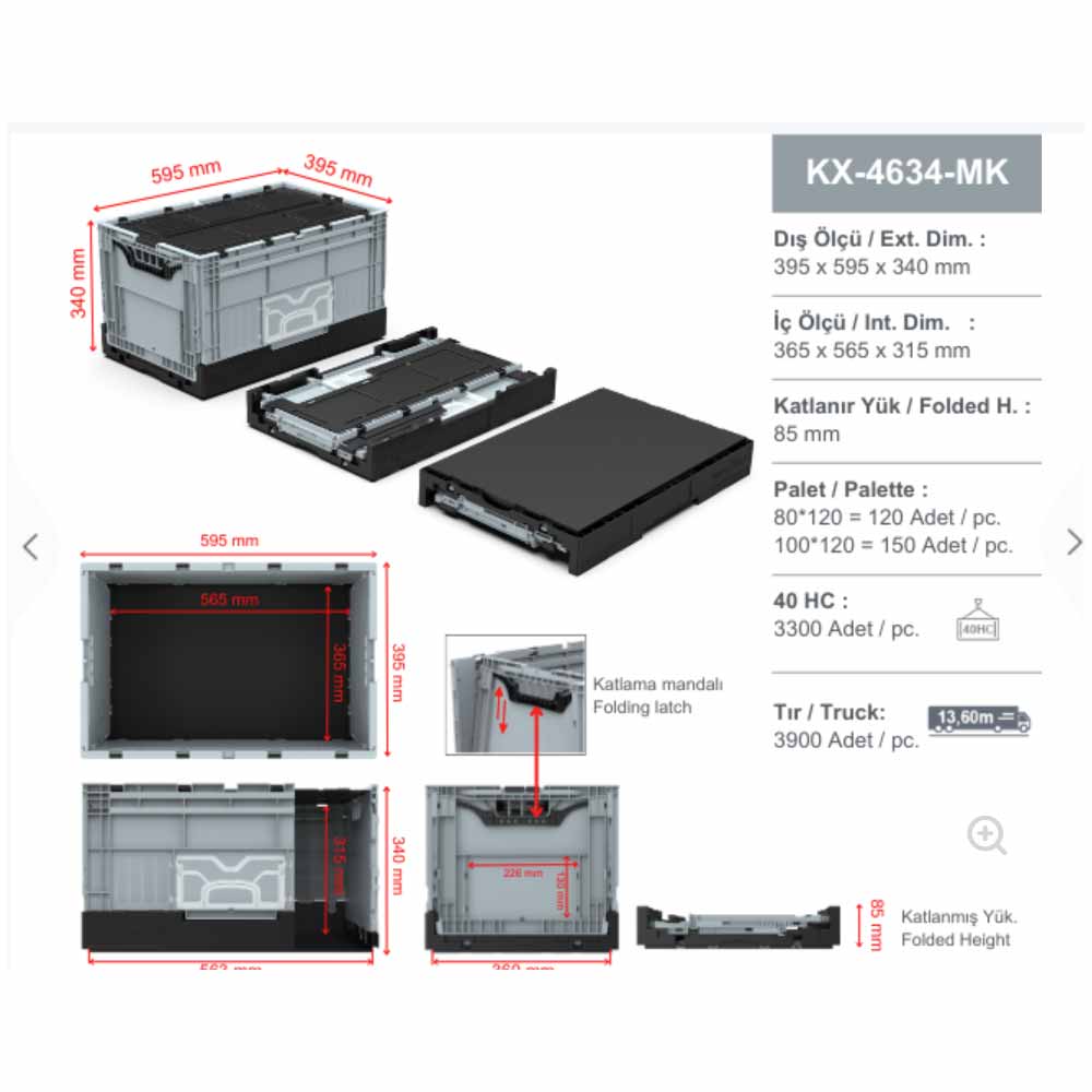 Kapaklı yapısı, taşınan ürünleri toz, kir ve dış etkenlerden korumaya yardımcı olurken, katlanabilir tasarım kullanılmadığı zamanlarda minimum alan kaplayarak depolama alanlarında ciddi yer tasarrufu sağlar. Dayanıklı plastik gövdesi yoğun kullanıma uygundur.