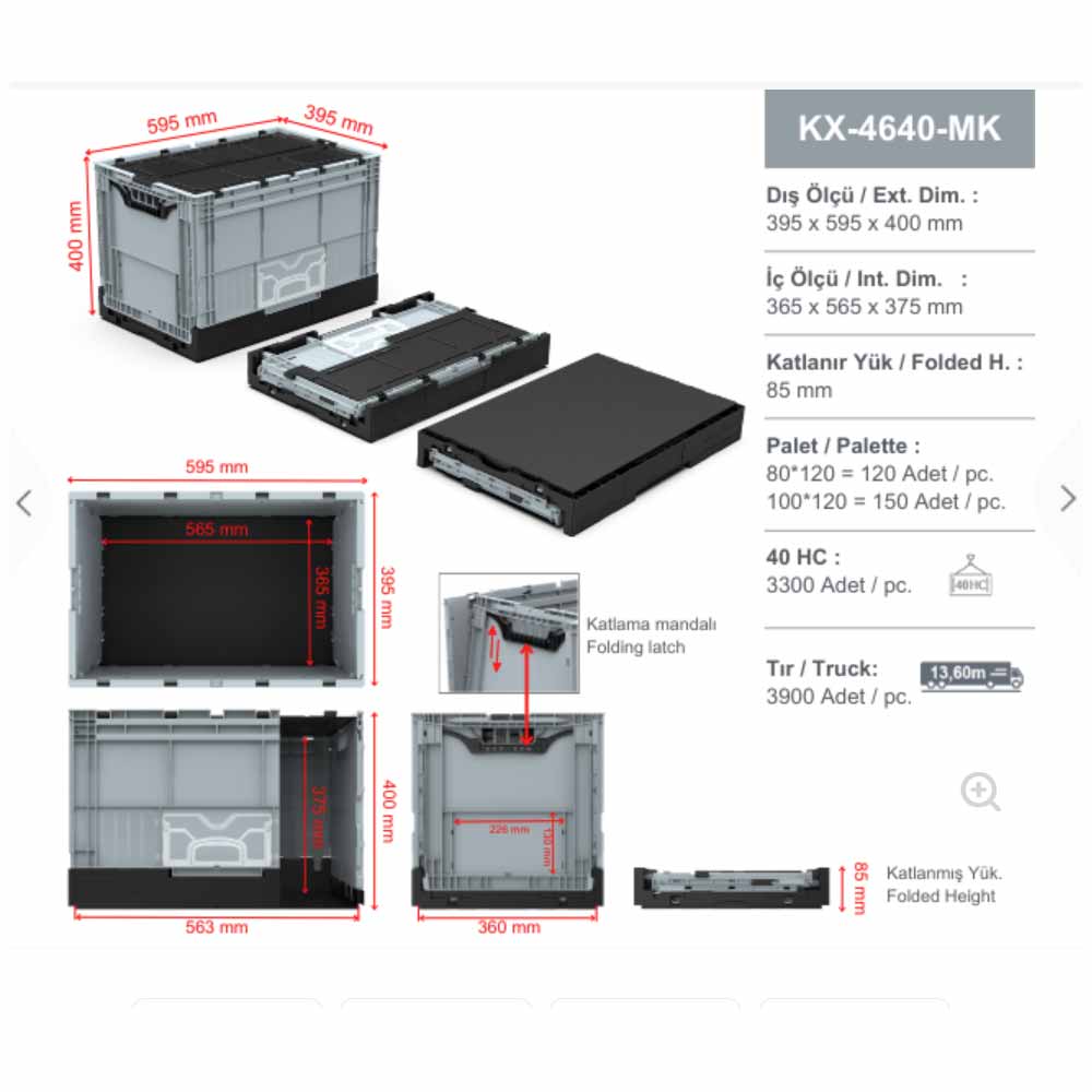 Kapaklı yapısı, ürünlerin tozdan ve dış etkenlerden korunmasına yardımcı olurken, katlanabilir tasarım kullanılmadığı zamanlarda minimum alan kaplayarak depolarda ciddi yer tasarrufu sağlar. Dayanıklı plastik gövdesi yoğun kullanıma uygundur.