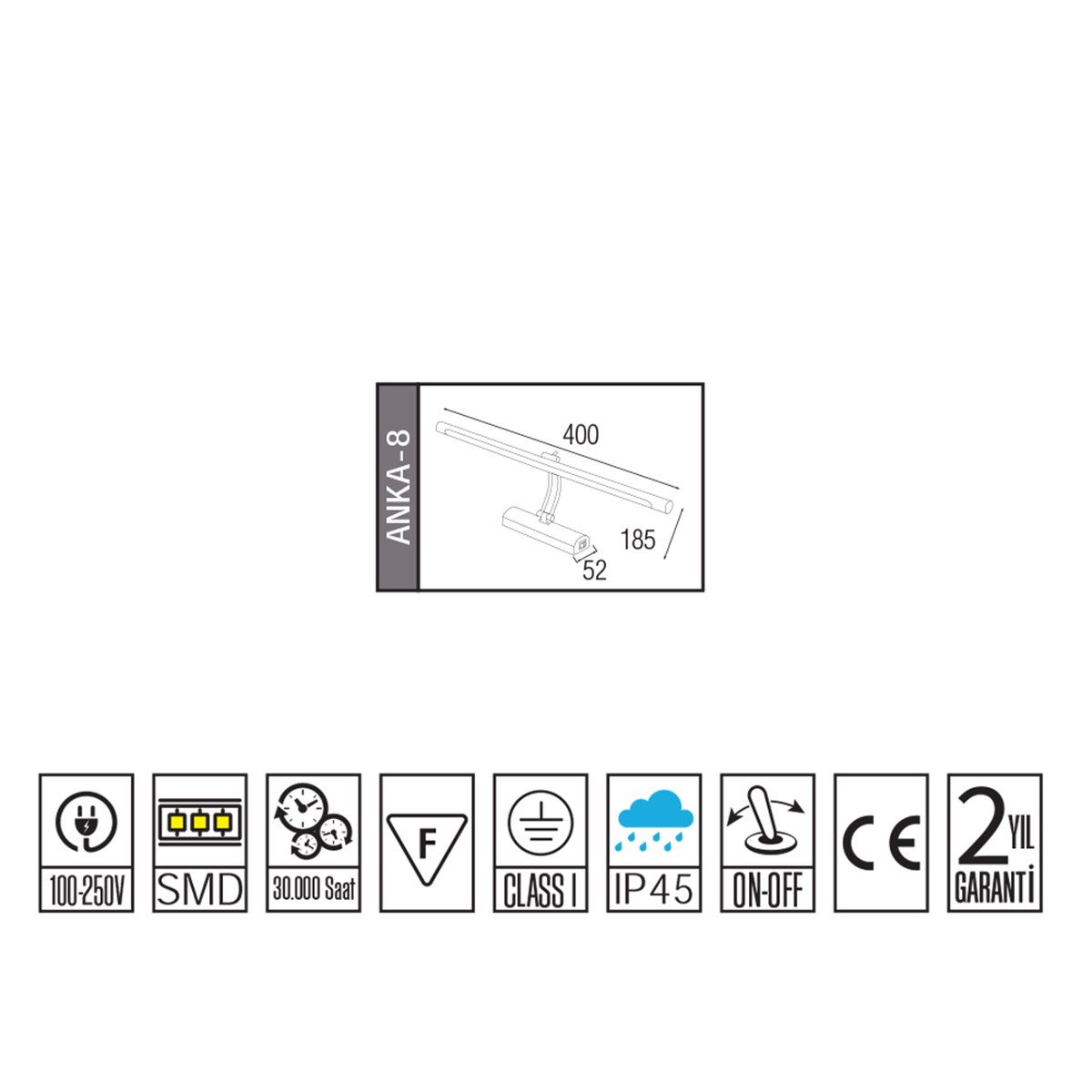 Horoz Anka 8w Krom Kasa Ayna Apliği 4200k Ilık Beyaz