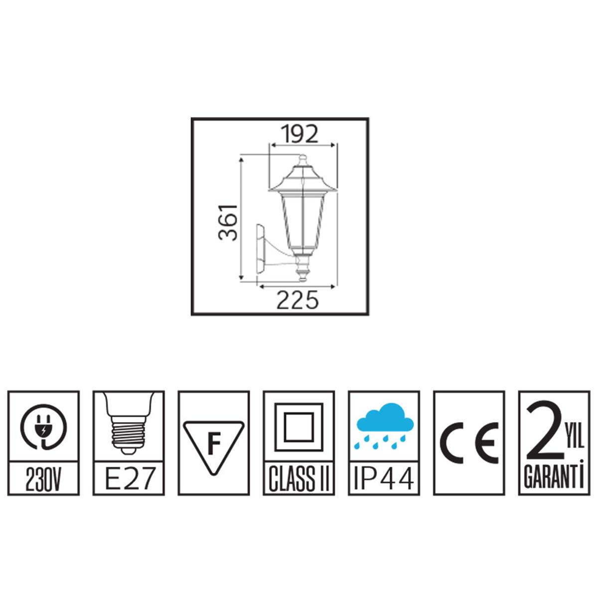 Horoz Begonya-2 Bahçe Aydınlatma Apliği Siyah E27 Duylu