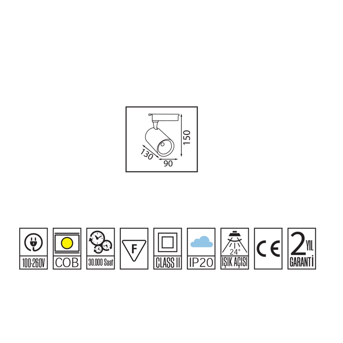 Horoz Dubai 30w Beyaz Kasa Ray Spot Led Armatür 3000k Sarı Işık