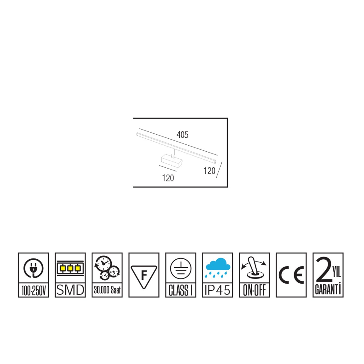 Horoz Kanarya 8w Krom Kasa Ayna Apliği 4200k Ilık Beyaz