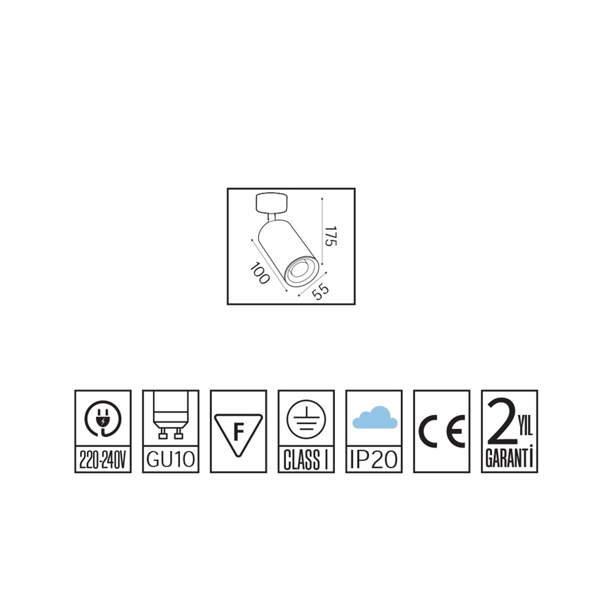 Horoz Lozan 50w Siyah Kasa GU10 Mr16 Sıva Üstü Spot Armatür
