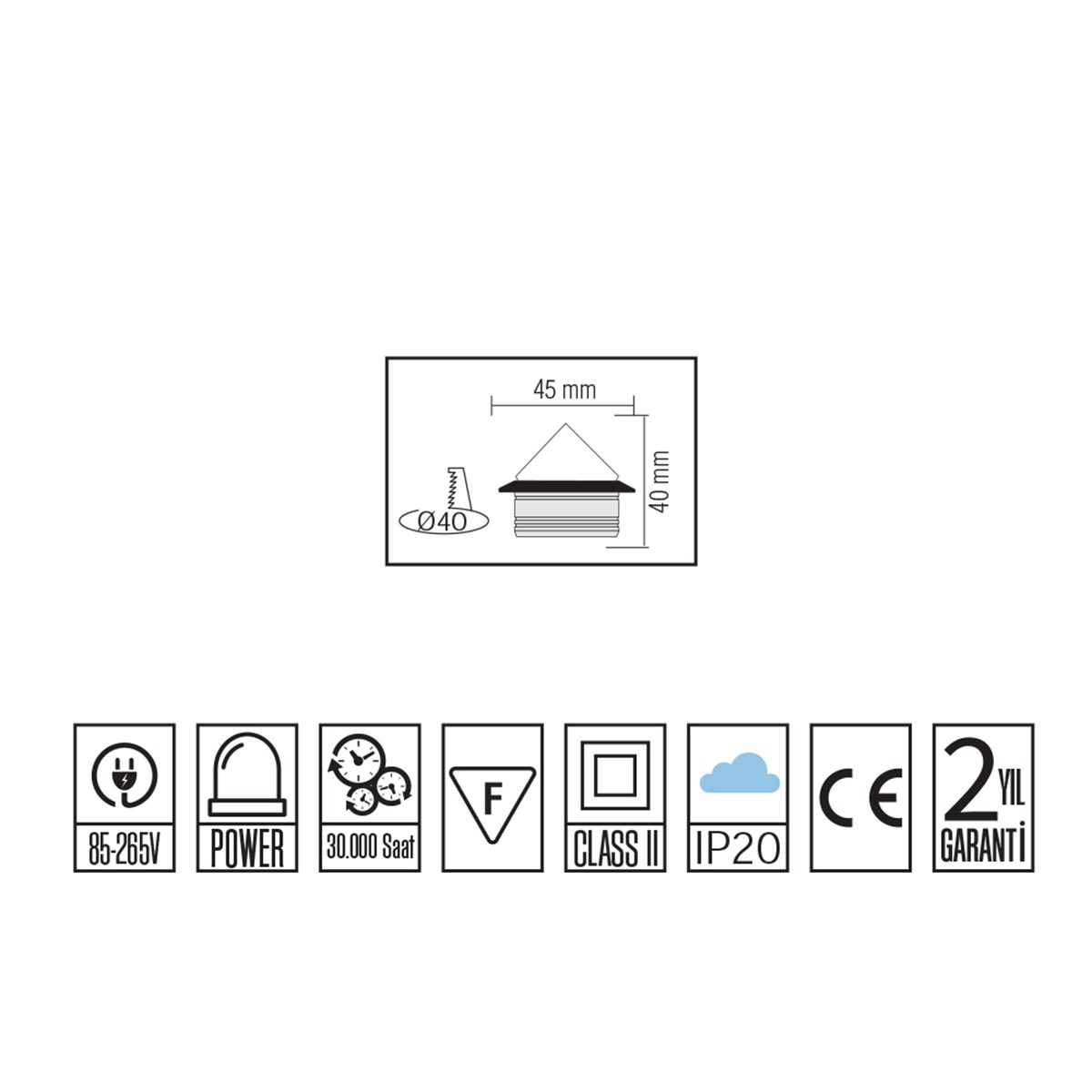 Horoz Nadia 1w Mat Krom Led Armatür 4200k Ilık Beyaz