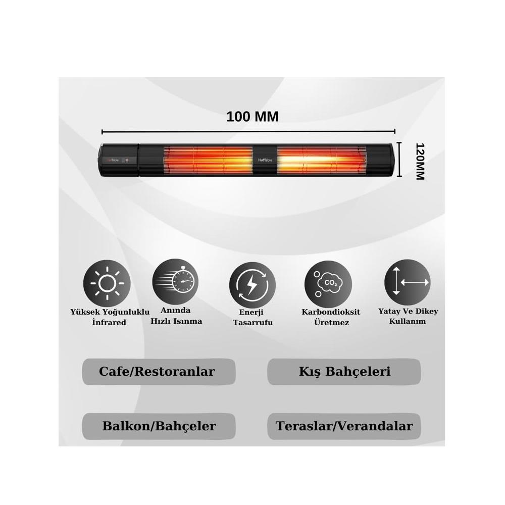 Hottable Classic Plus 3000 W Uzaktan Kumandalı Duvar Tipi İnfrared Dış Mekan Isıtıcı