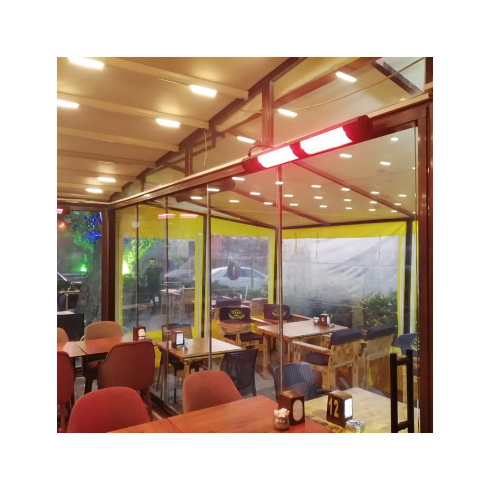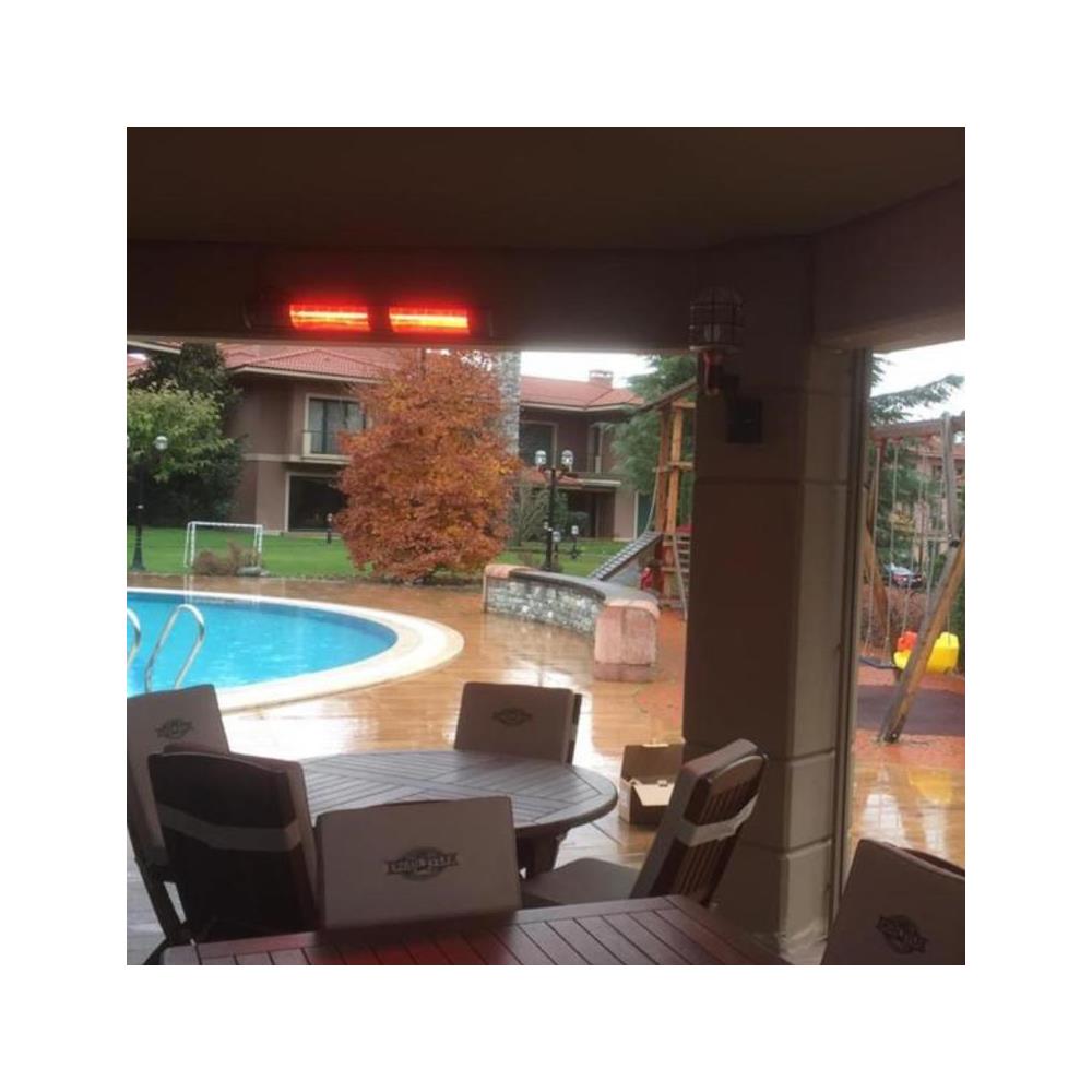 Infrared ısıtma teknolojisi, doğrudan insanları ve nesneleri ısıtarak enerji tasarrufu sağlarken, suya ve toza dayanıklı yapısı ile zorlu hava koşullarına karşı direnç gösterir. Teras, balkon, bahçe, kafe ve restoran gibi dış mekanlarda güvenle kullanılabilir. Duvara monte edilebilir tasarımı, yerden tasarruf ederken estetik bir görünüm sunar.