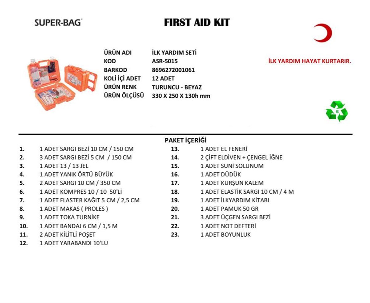 Evinizde, iş yerinizde ve arabanızda taşımak için portatif ecza dolabıdır.