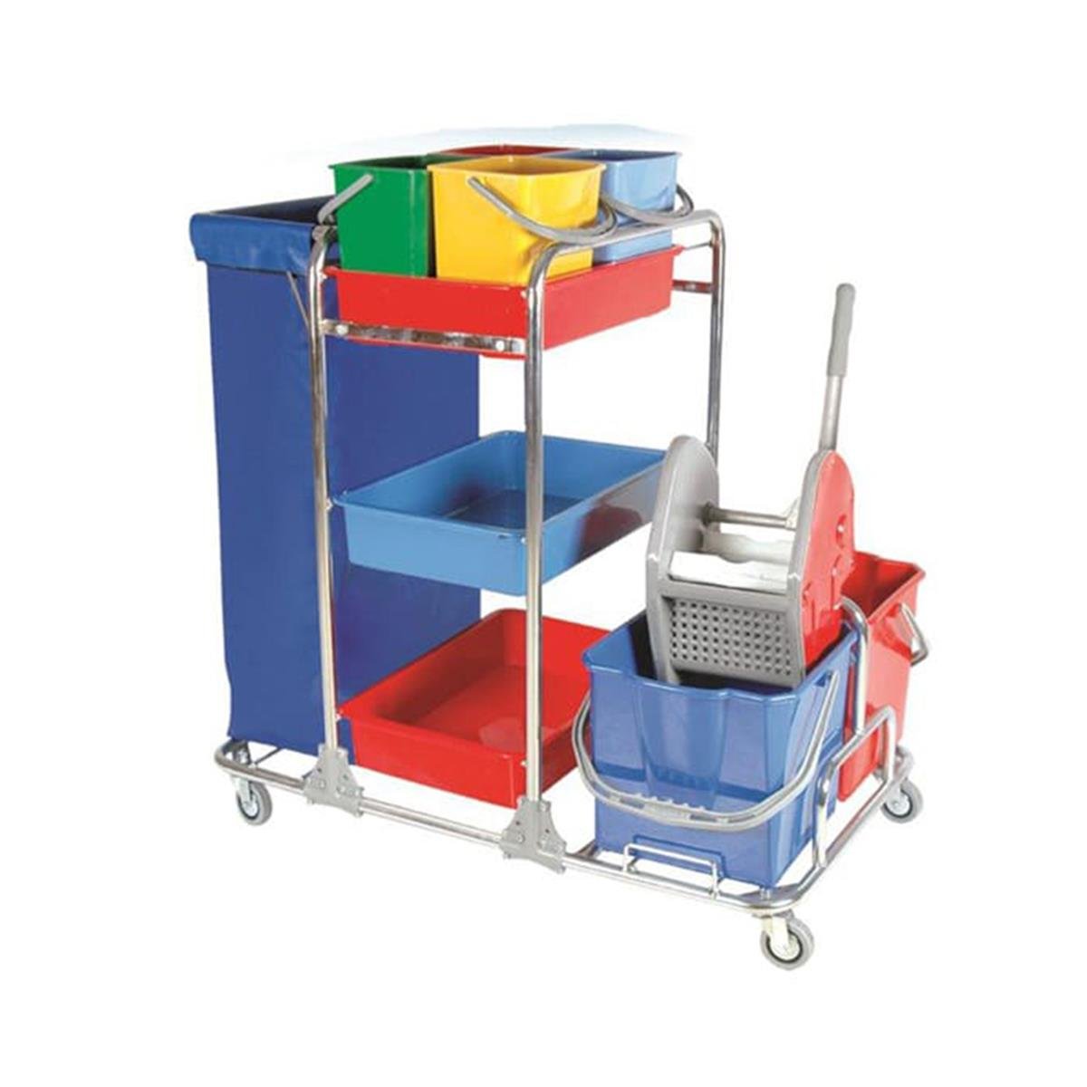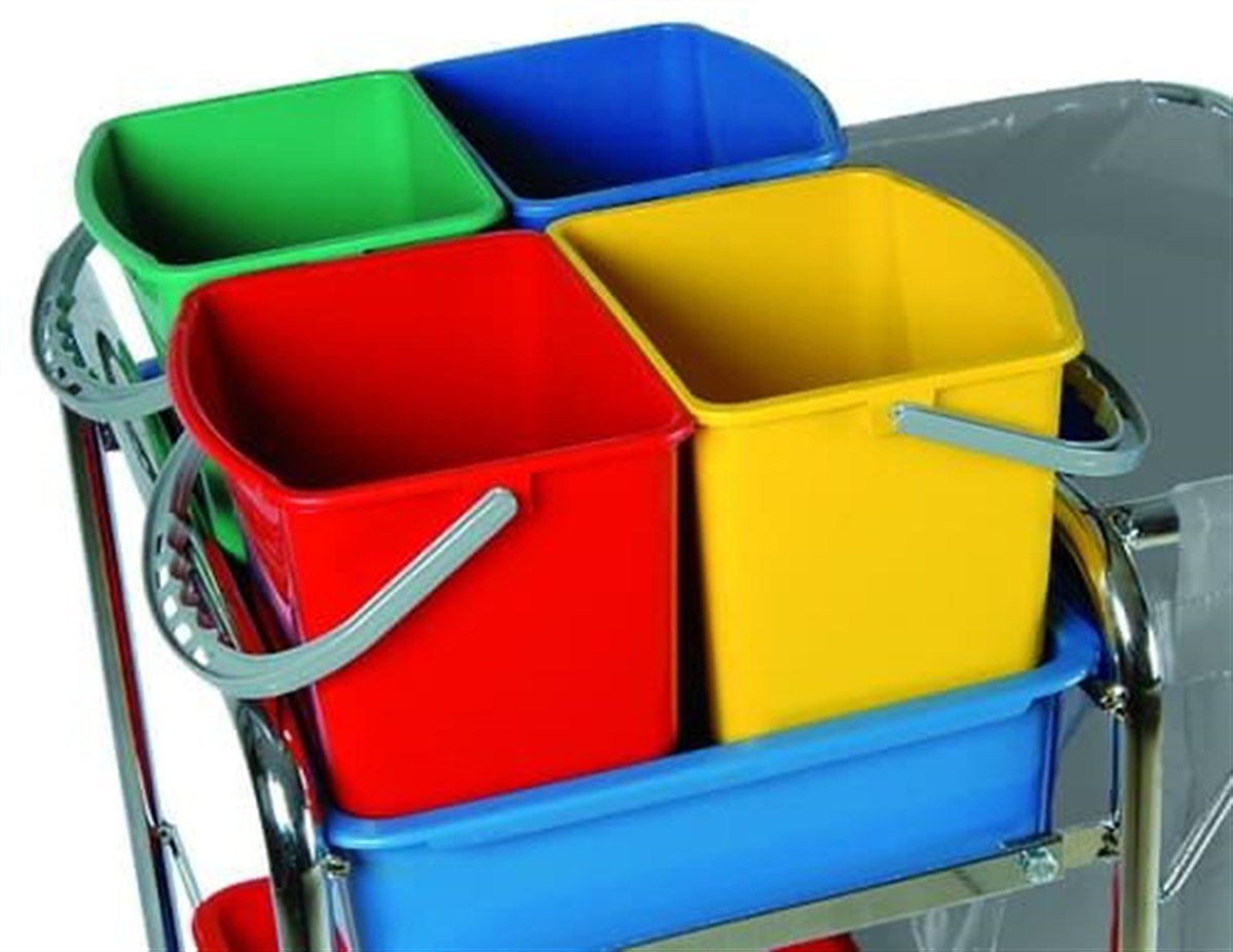 çöp torbası kullanımı yeri, önde 2x20L kapasiteli kova ve presten oluşan temizlik seti ve