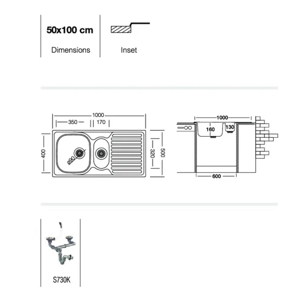 Krom Eviye Oberon 50x100cm 1.5 Göz Sol (Sifon Dahil) EC-168