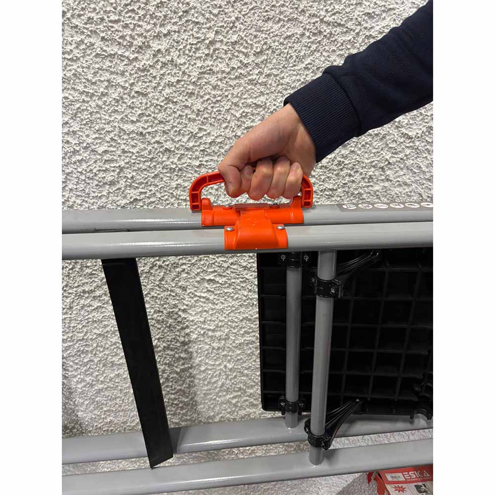 Taşıma kolaylığı sağlayan kilitli taşıma kolu sayesinde merdiven rahatlıkla taşınabilir ve saklanabilir. Hafif ve ergonomik yapısı ile günlük kullanımda büyük avantaj sağlar.