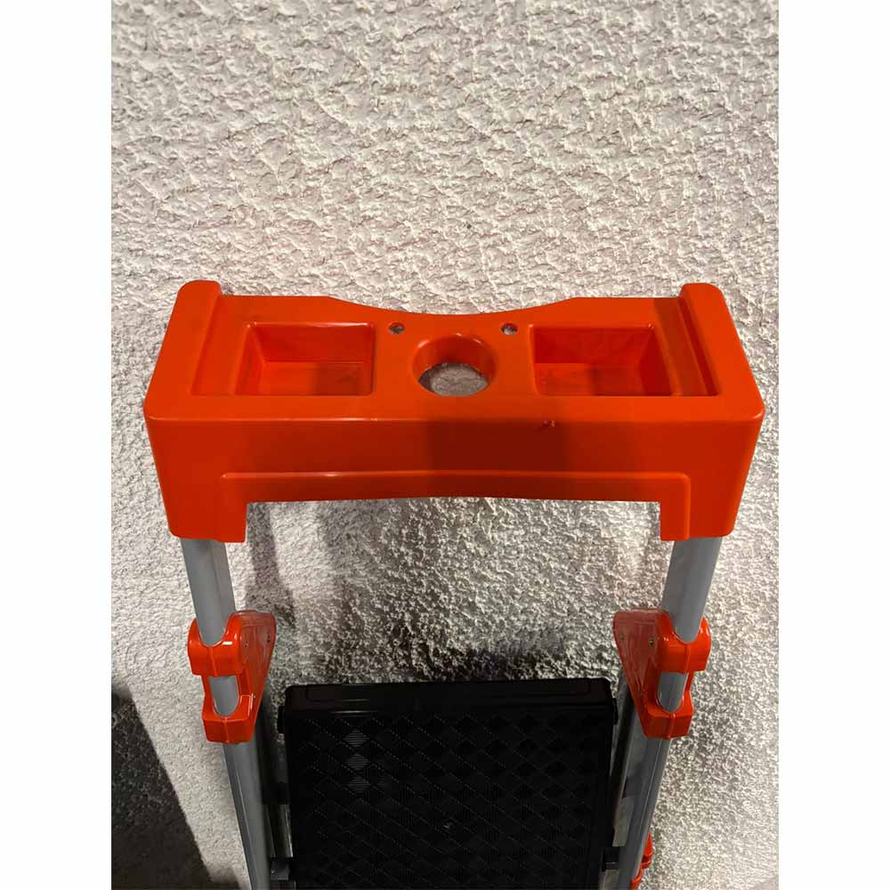 Merdiven üzerinde yer alan kaymaz basamaklar ve geniş üst tabla, kullanıcı güvenliğini maksimum seviyeye çıkarır. Kaydırmaz plastik takozlar ise zemine sağlam tutunarak kayma riskini azaltır.