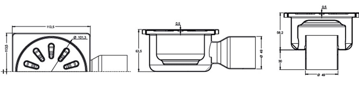 Maxiflow Premium süzgeç, paslanmaz çelik gövdesiyle korozyona karşı dayanıklıdır ve uzun ömürlü kullanım sunar. 10x10 yer süzgeci ölçüsüyle az yer kaplar, Ø50 mm çıkışıyla etkili tahliye sağlar. Alt çıkışlı süzgeç formu, özellikle dikey hatlara doğrudan bağlantı yapılabilen alanlarda montaj kolaylığı ve yüksek performans sunar.