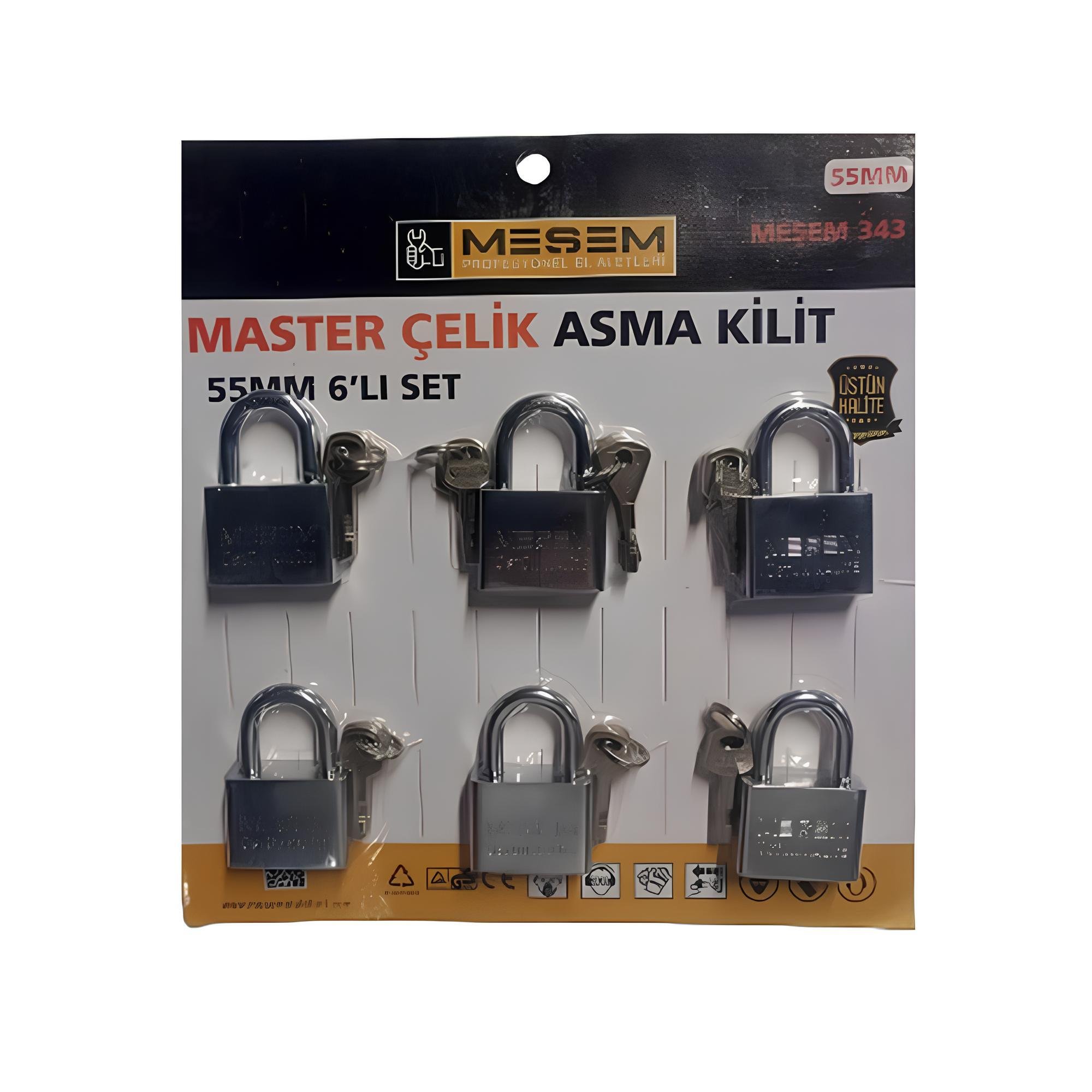 Meşem Master Sistem Çelik Asma Kilit 55mm 6'lı Set MŞ-343