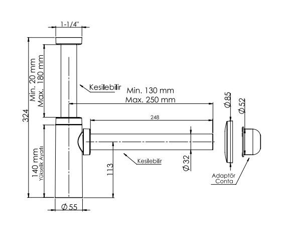 Paket içeriğindeki adaptör conta eksiksiz montaj sağlar.
