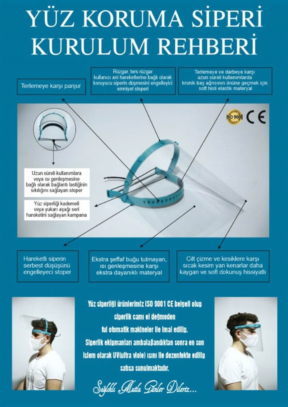- Siperlik camı el değmeden ful otomatik makineler ile imal edilip. Siperlik ekipmanları ambalajlandıktan sonra en son işlem olarak UV(ultra viole) ışını ile dezenfekte edilip paketlenmiştir.