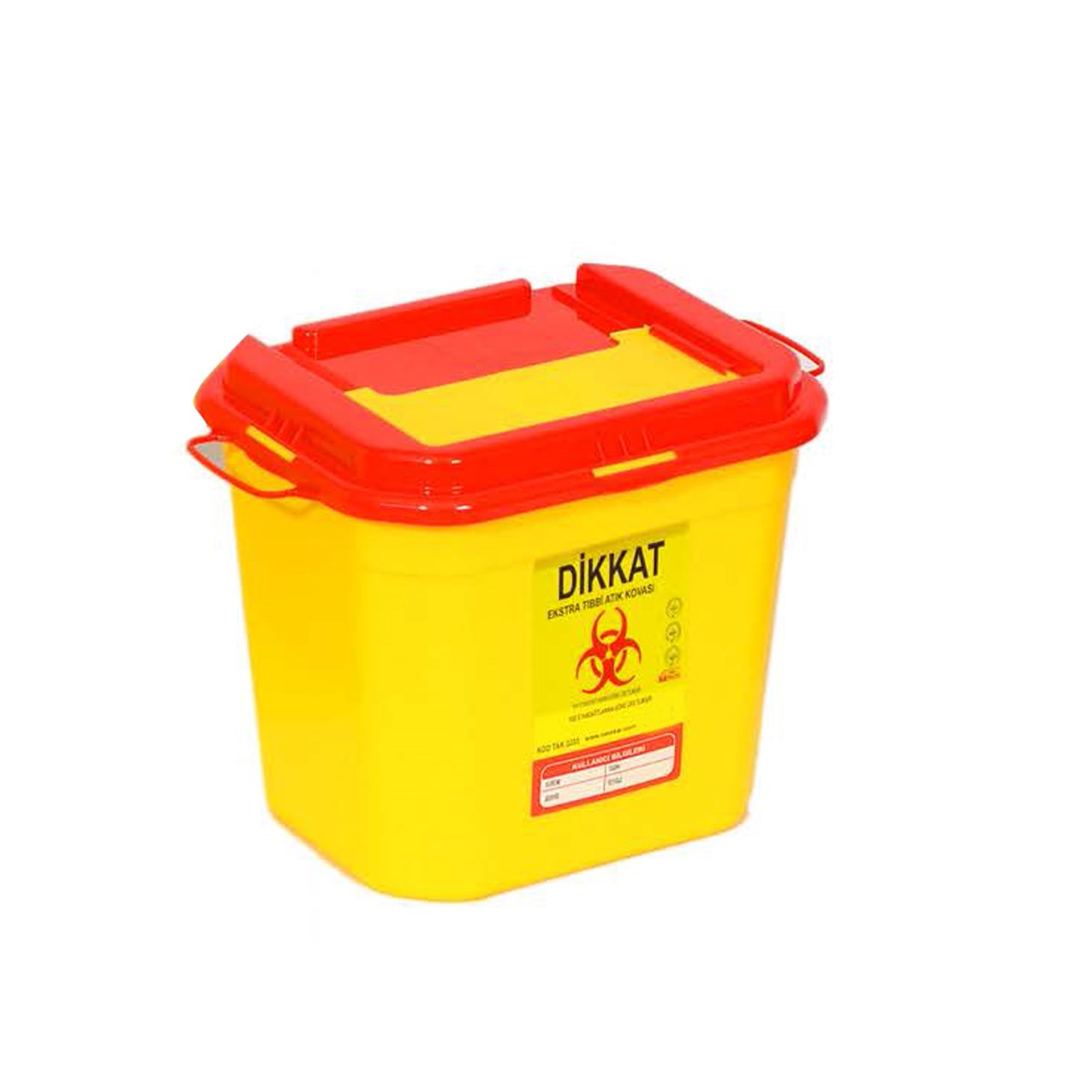 20L kapasiteli enfekte atık/tıbbi atık kovası tek kullanımlık özel tasarım kapağı ile güvenli bir kullanım sunar.
