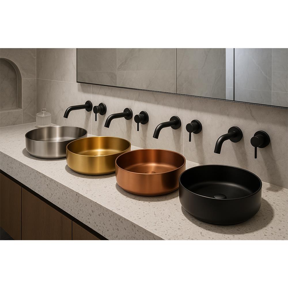 Newarc SS40RMB Mat Bakır Lavabo, modern tasarımı ve zarif rengiyle banyo ve mutfak dekorasyonunuza estetik bir dokunuş katar. Yüksek kalite AISI 304 paslanmaz çelikten