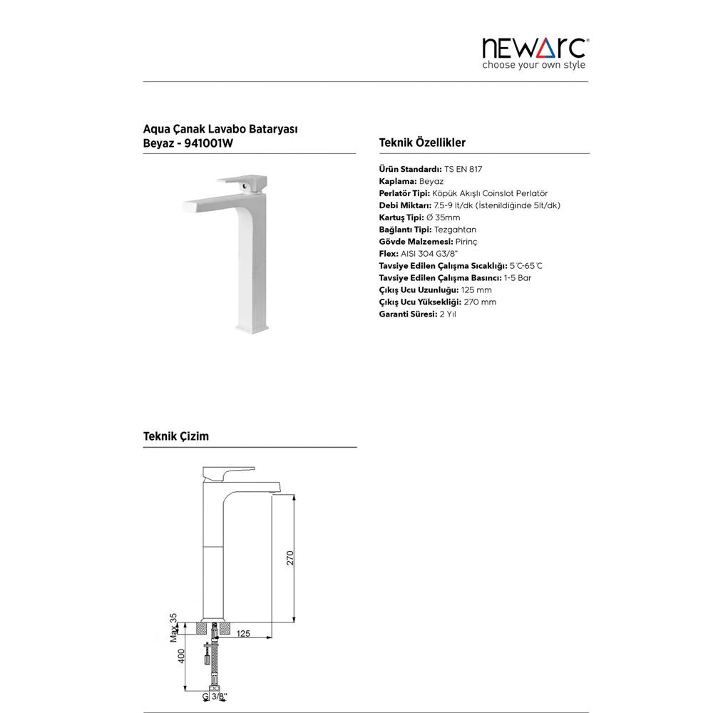 Aqua Çanak Tipi Lavabo Bataryası Beyaz
