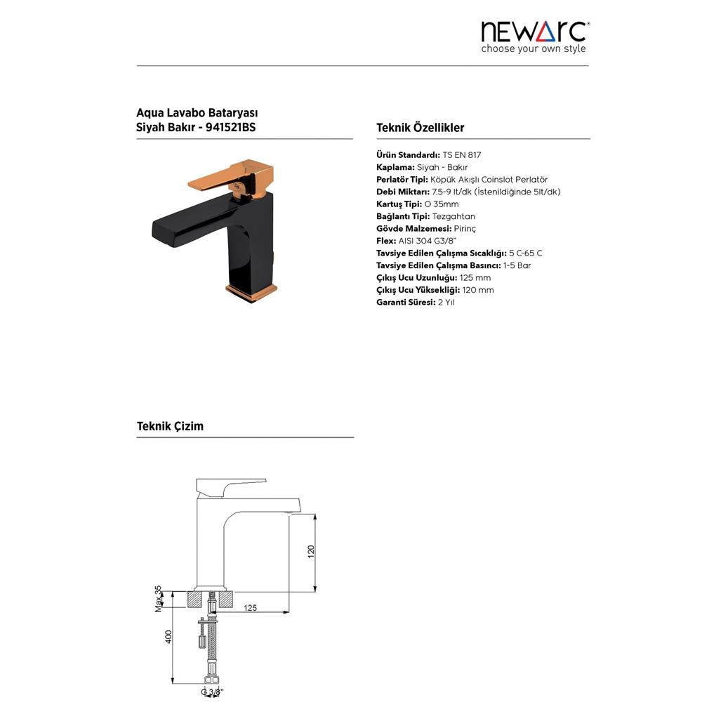 Aqua Lavabo Bataryası Siyah / Parlak Bakır