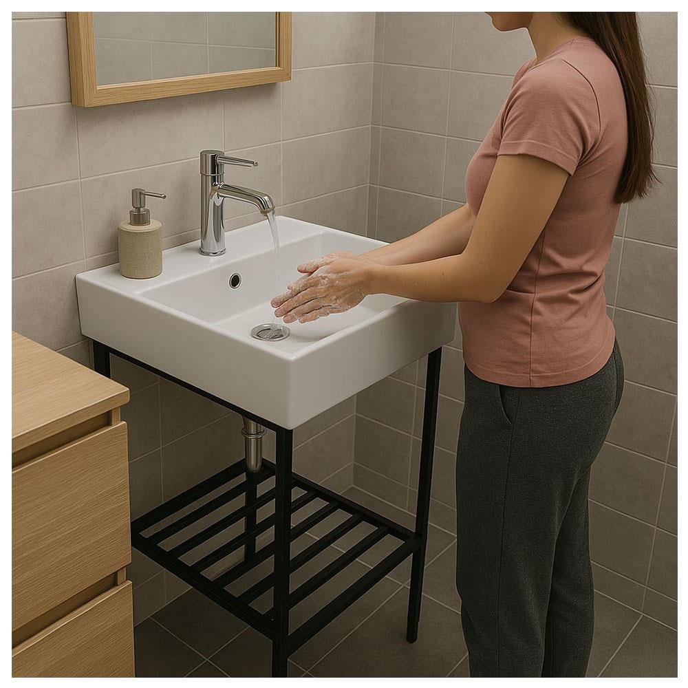 Newarc Banyo Dolabı Metal Ayaklı 44X41X72,5Cm 3025 + Platin Lavabo 5025