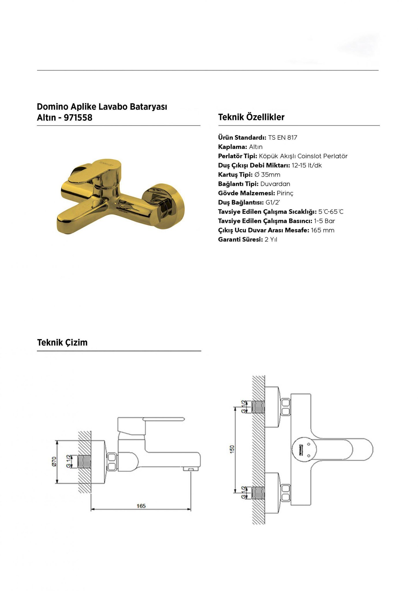 Newarc Domino Aplike Lavabo Bataryası Altın 971558