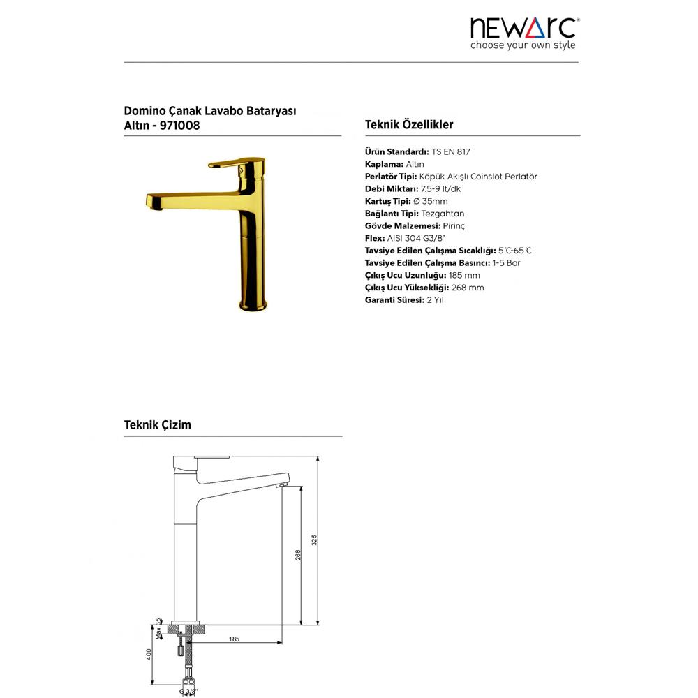 Newarc Domino Çanak Tipi Lavabo Bataryası Altın 971008