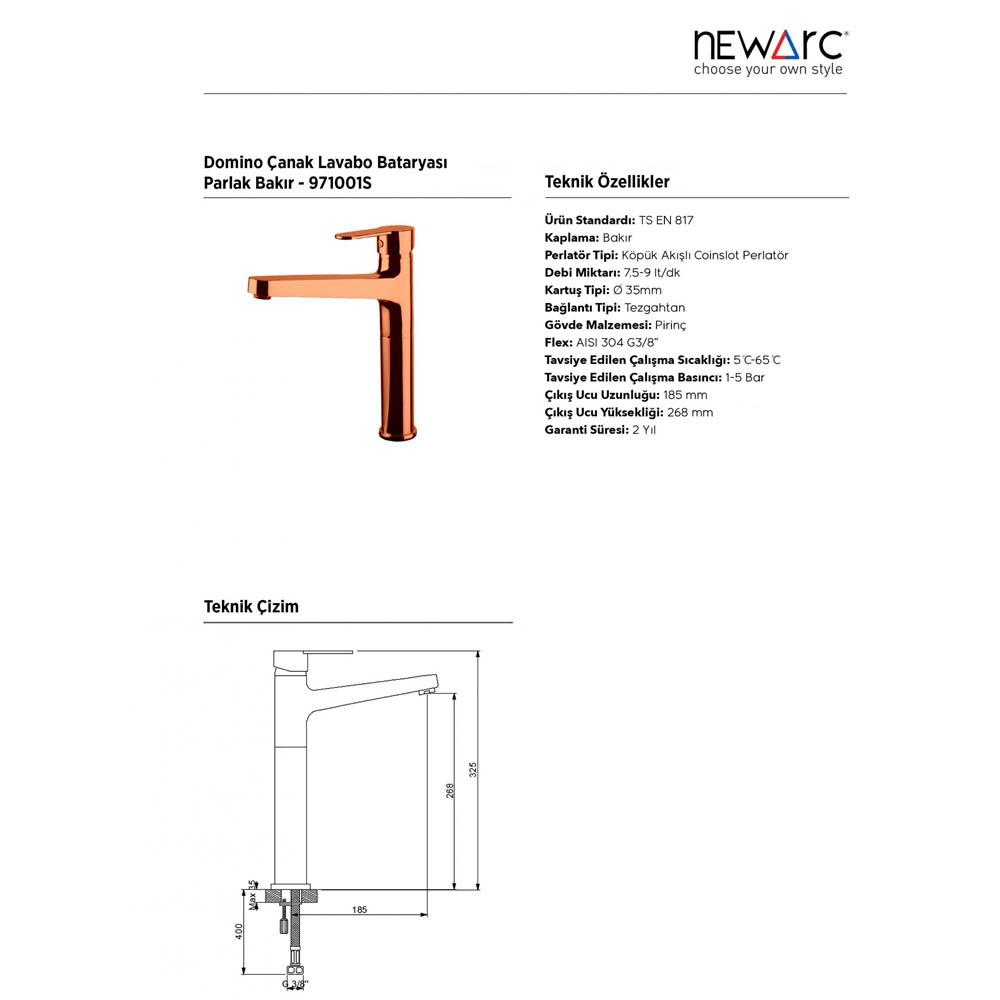 Newarc Domino Çanak Tipi Lavabo Bataryası Parlak Bakır 971001S