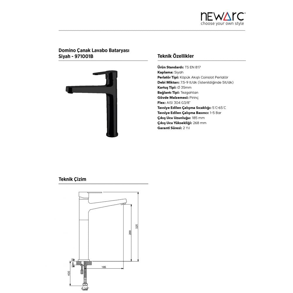 Newarc Domino Çanak Tipi Lavabo Bataryası Siyah 971001B