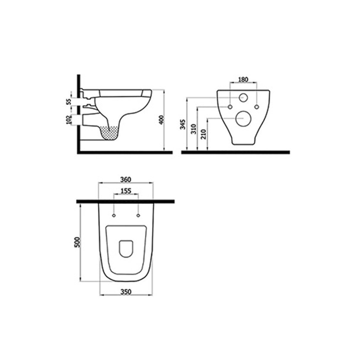Newarc Energy Asma Klozet Kanalsız 2823 35x50 cm + Energy Pp Kapak 7804
