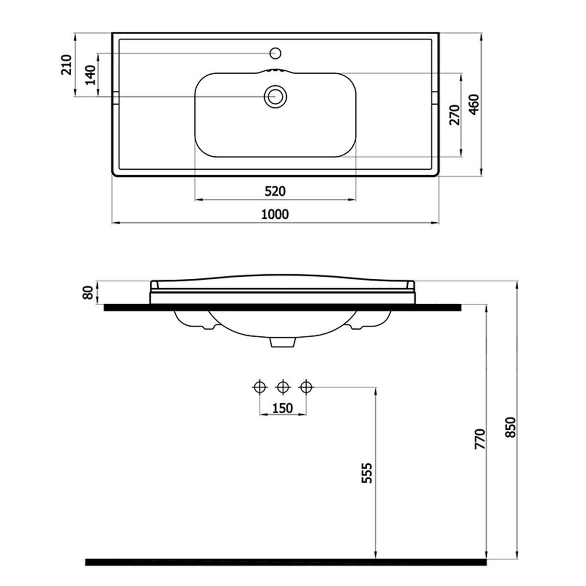 Newarc Etajerli Tek Delikli Elite Lavabo 100X46X8Cm 509100