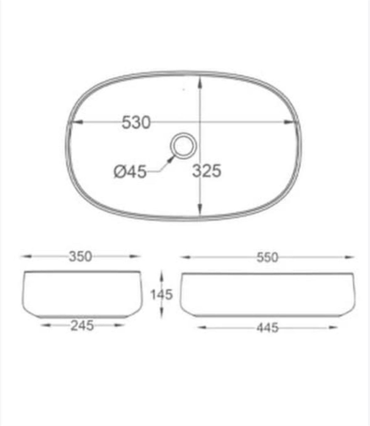 Newarc Lavelli Tezgah Üstü Lavabo Mat Beyaz 55X35X14,5Cm Lav.L.055 Mw