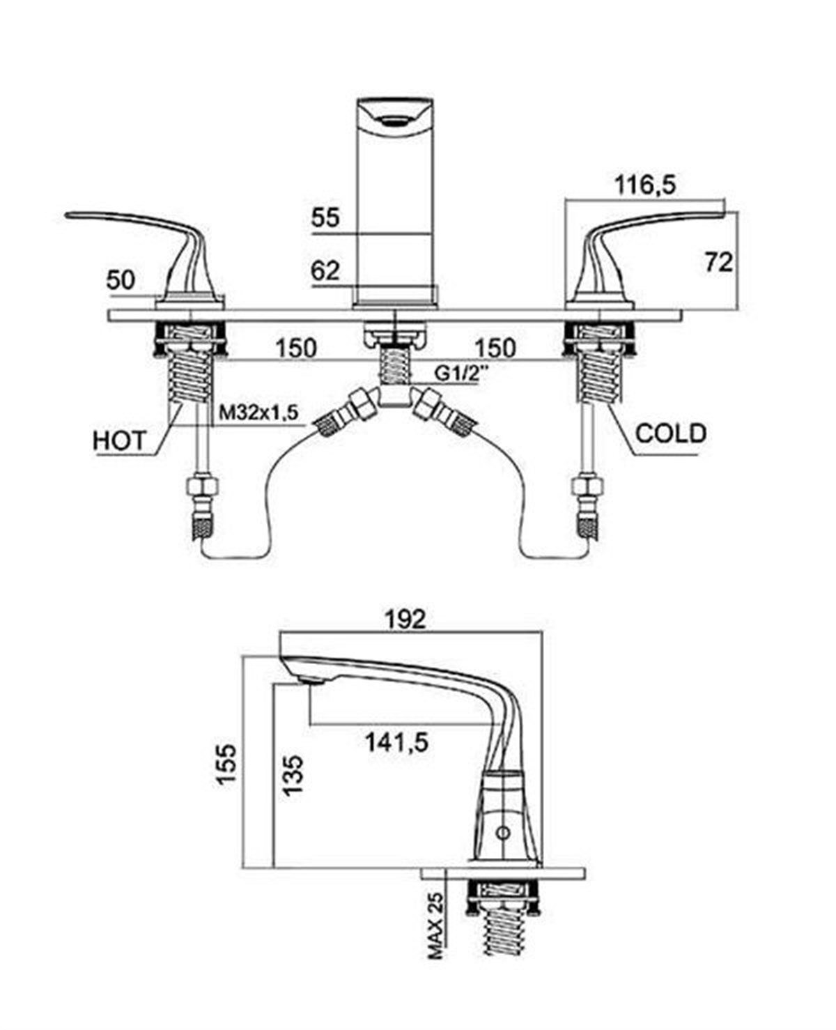 Newarc Loft 3 Delikli Lavabo Bataryası Siyah 921561B