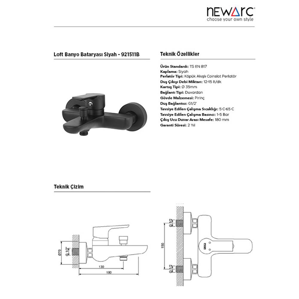 Newarc Loft Banyo Bataryası Siyah 921511B