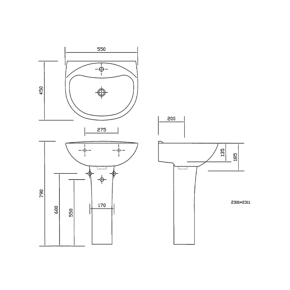 Newarc Minart Lavabo 45X55 + Yarım Ayak 2301+2312