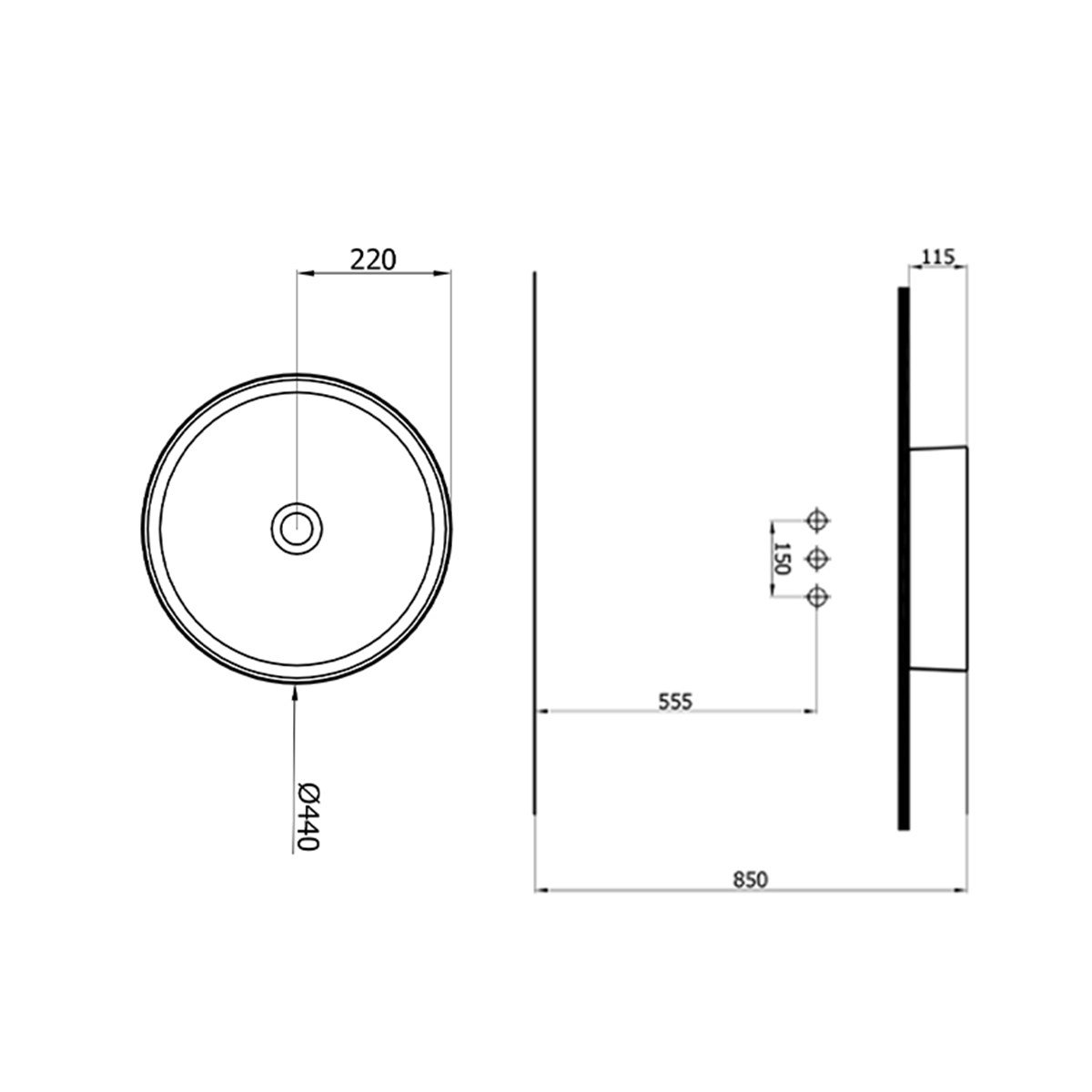 Newarc Mittes Tezgah Üstü Lavabo Mat Siyah 44X11,5Cm Mit.L.044-Mb