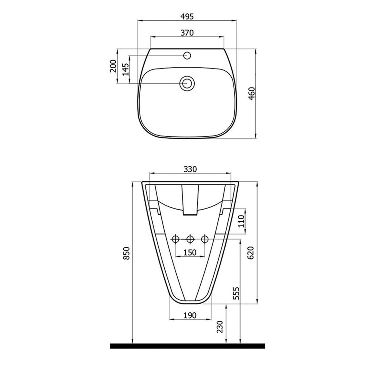 Newarc Monoblok Lavabo Mono 49,5X46X62Cm Parlak Siyah 3818B