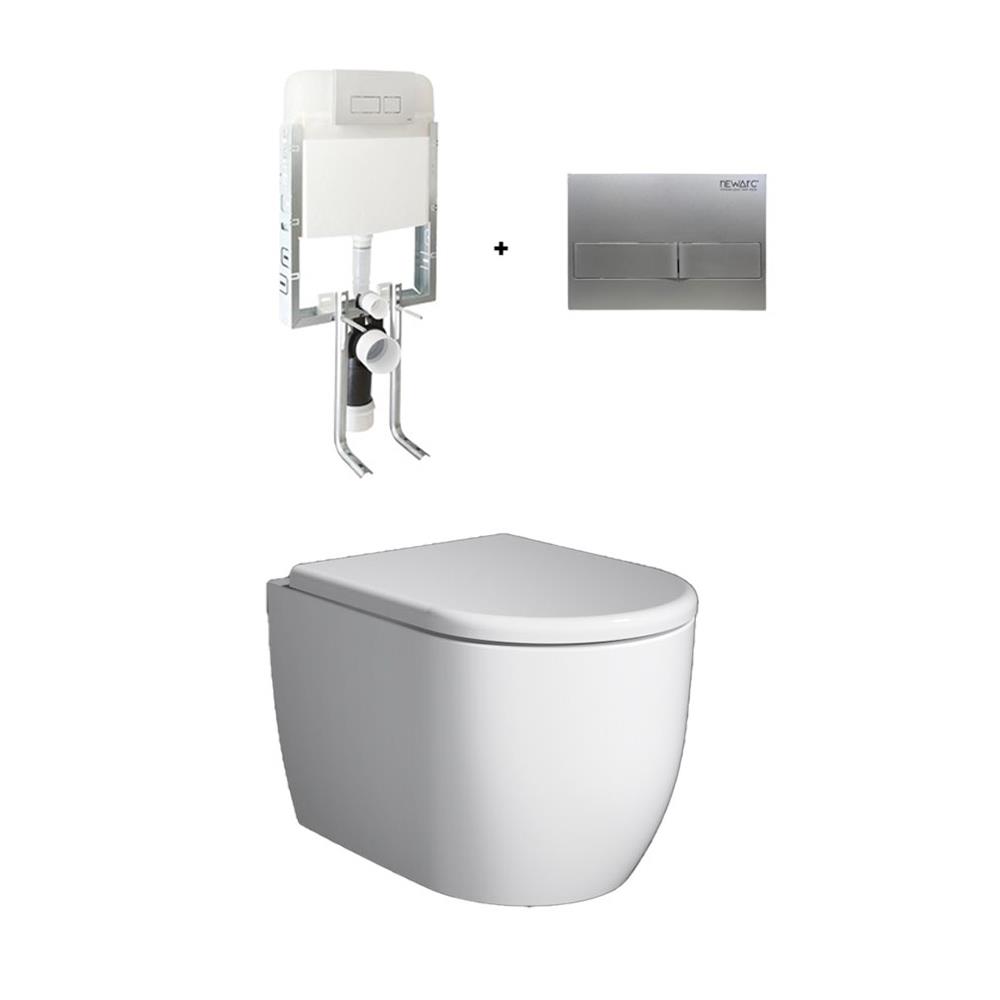 Newarc Moreno Kanalsız Asma Klozet + Yavaş Kapanır Kapak ve Gömme Rezervuar Seti
