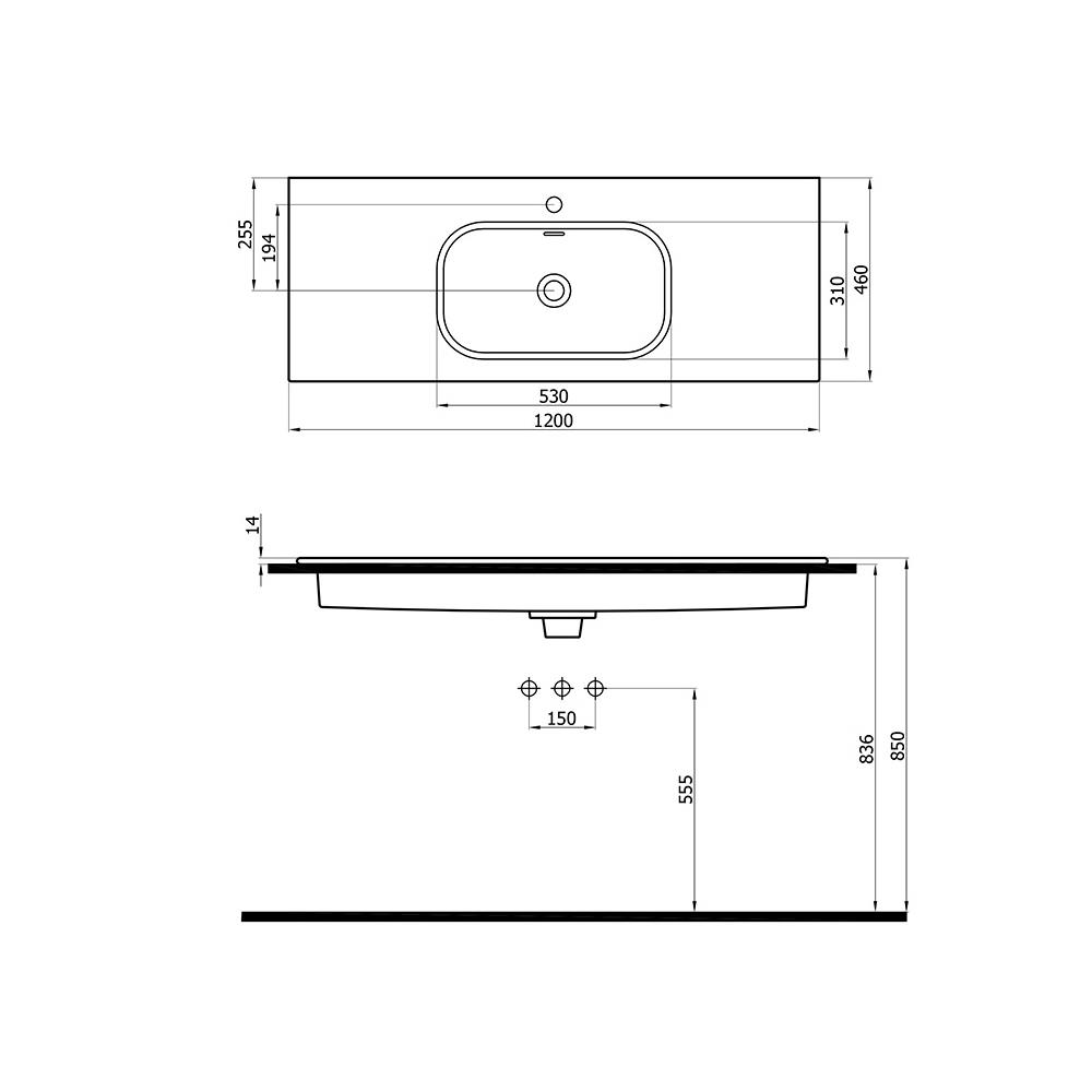 Newarc Naturel Etajerli Lavabo Mat Siyah 120X46X1,4Cm 504120Mb