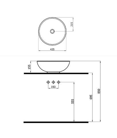 Newarc Newart Tezgah Üstü Lavabo Krom Ø43,5X15,5Cm 5010Cr