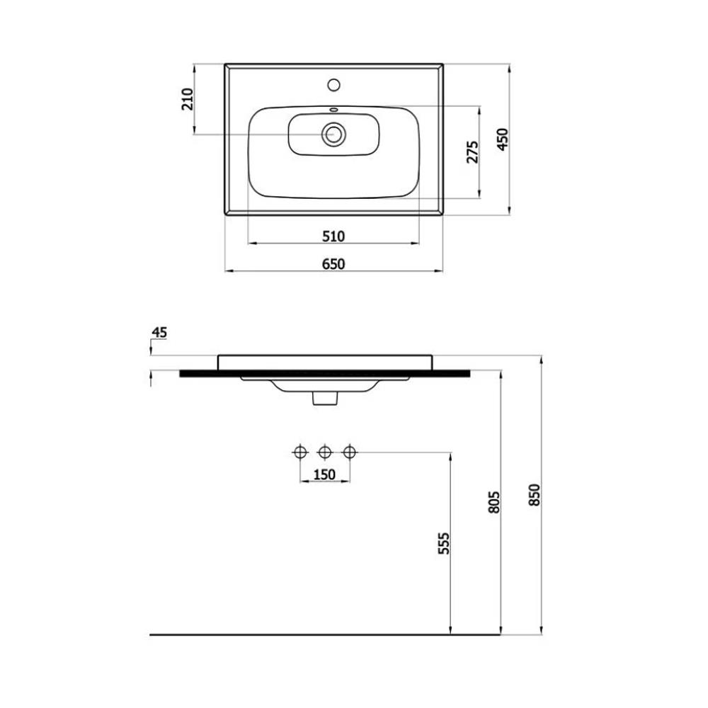 Newarc Newline Etajerli Lavabo Parlak Siyah 65X45X4,5Cm New.L.065B