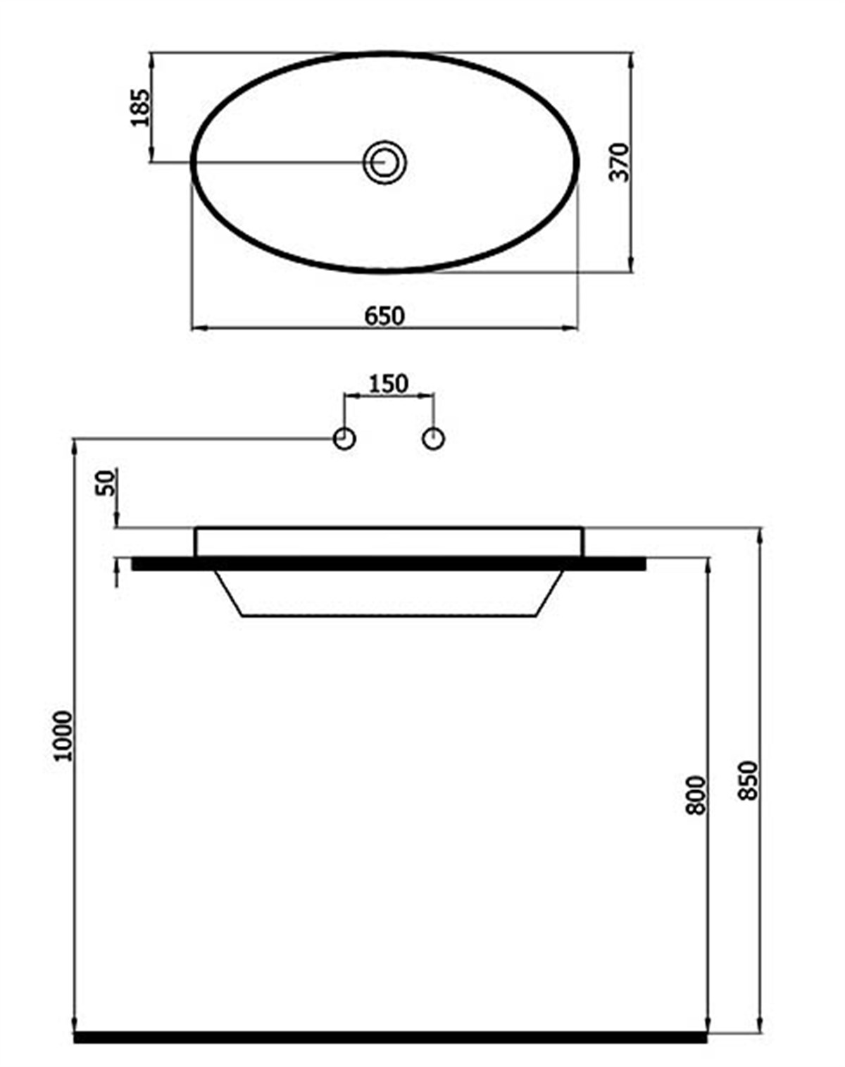 Newarc Sand Tezgah Üstü Lavabo Mat Siyah 65X37X5Cm 505065