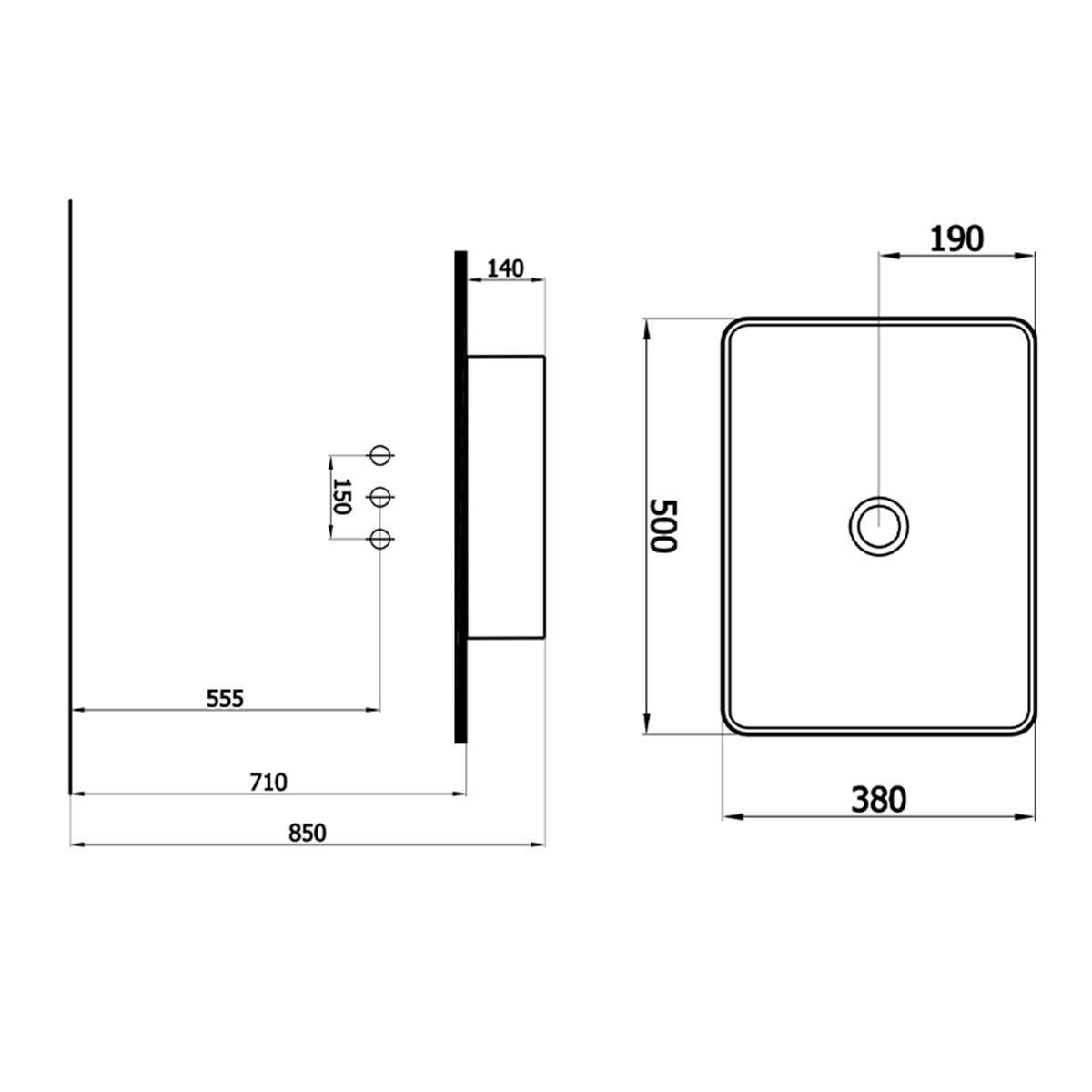 Newarc Silver Slim Tezgah Üstü Lavabo Parlak Siyah 50X38X14Cm 5011-B