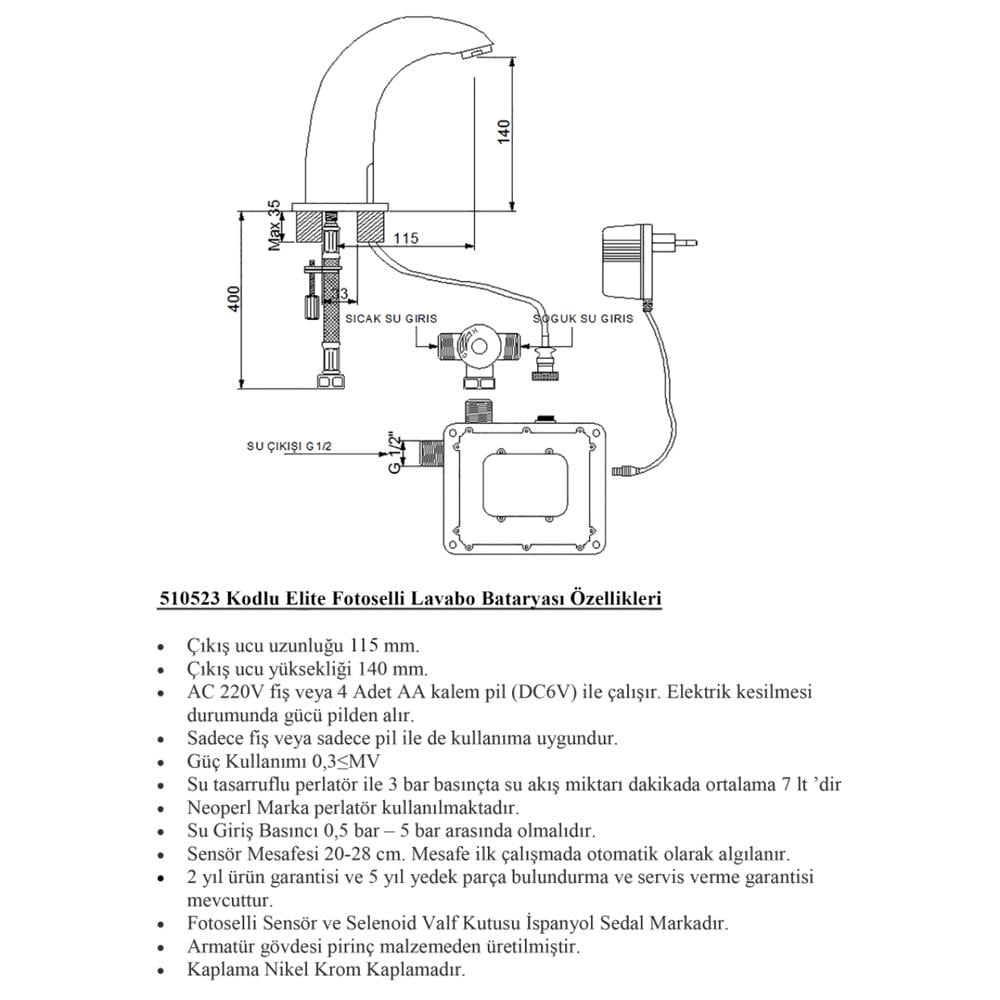 – Elite fotoselli lavabo bataryası