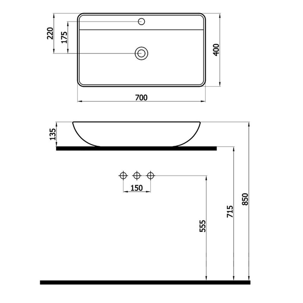 Newarc Tezgah Üstü Batarya Delikli Domino Lavabo 70X40X13,5Cm 5019Bt
