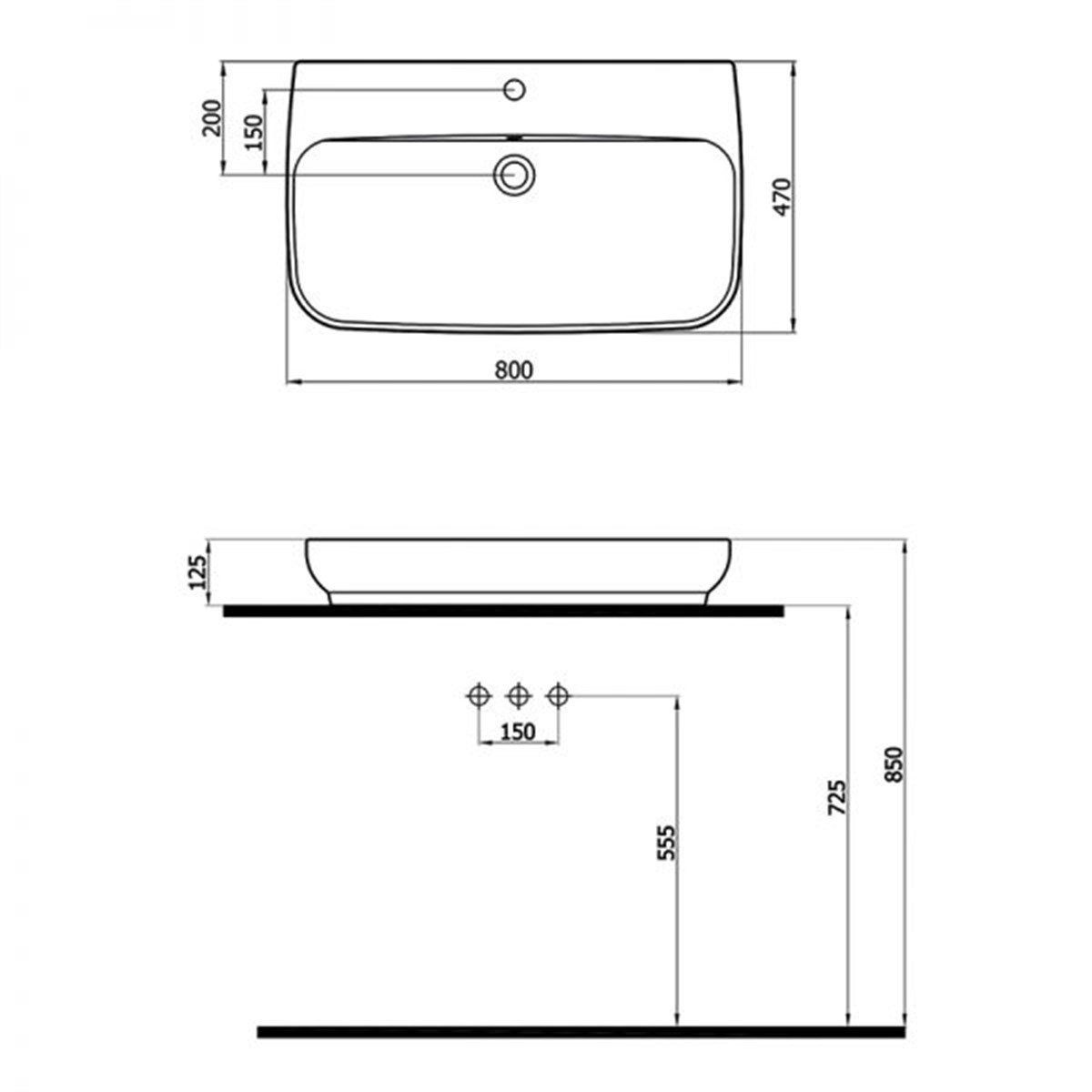 Newarc Tezgah Üstü Batarya Delikli Exsen Lavabo 80X47X12,5Cm 503080