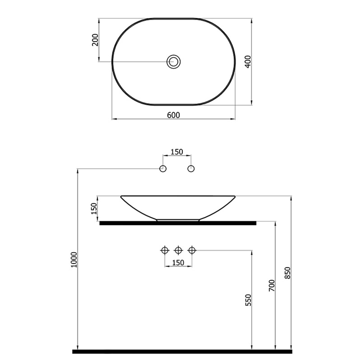 Newarc Trend Tezgah Üstü Lavabo Parlak Siyah 60X42X15Cm Tre.L060B