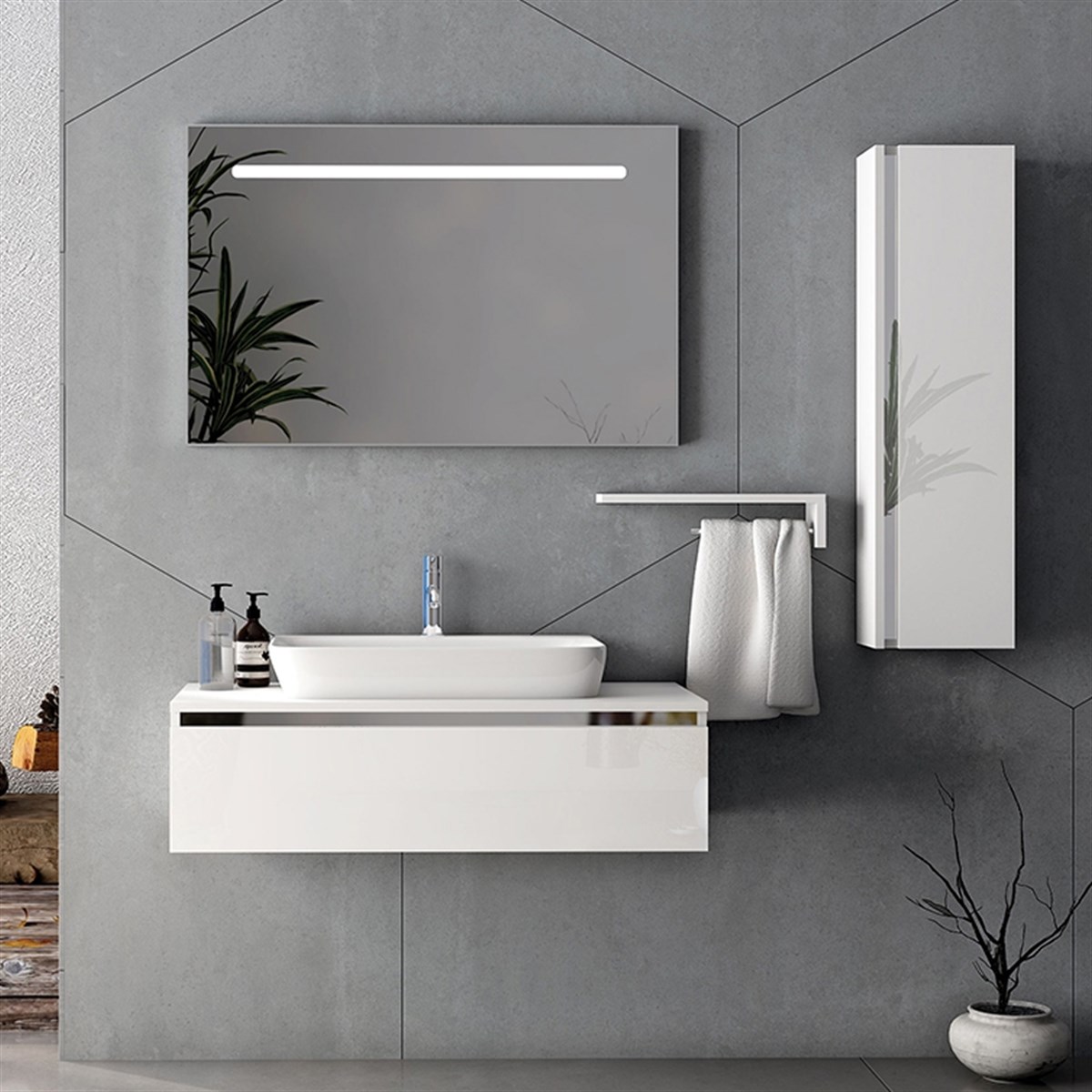 Nplus Baco Plus 90 cm Banyo Dolabı Beyaz/Krom