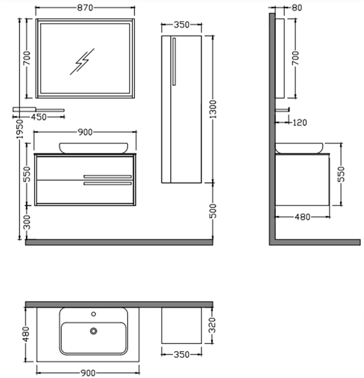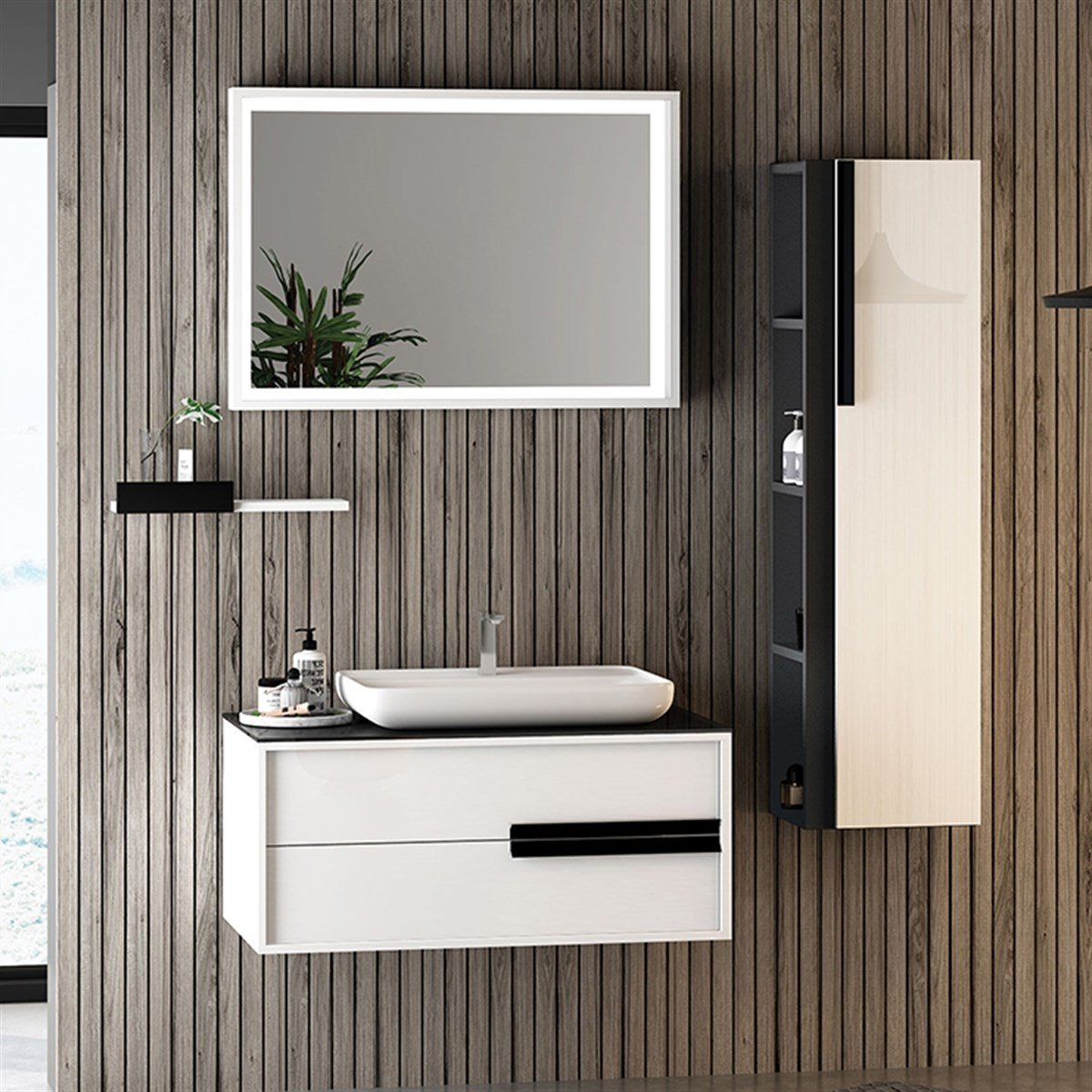 Nplus Camry 90 cm Banyo Dolabı Antik Beyaz/Siyah